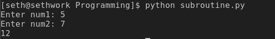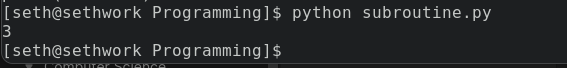 print(addition)When this code is executed, it will return the literal 3. This is because we pass the values 1 and 2 to the subroutine, which then adds them together. The answer is printed out because we save the result in a variable and then display it with the print command.