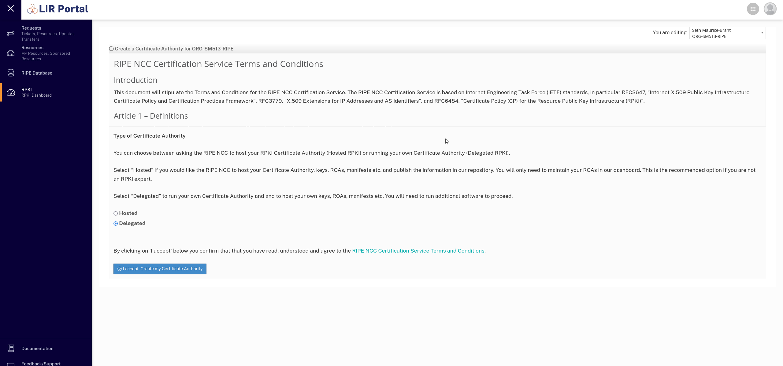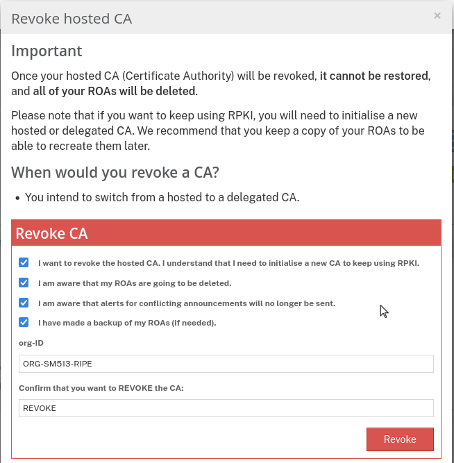 SETH-MBname and moved on. - However I still had my hosted CA on RIPE, so I had to go and revoke that before I could continue.