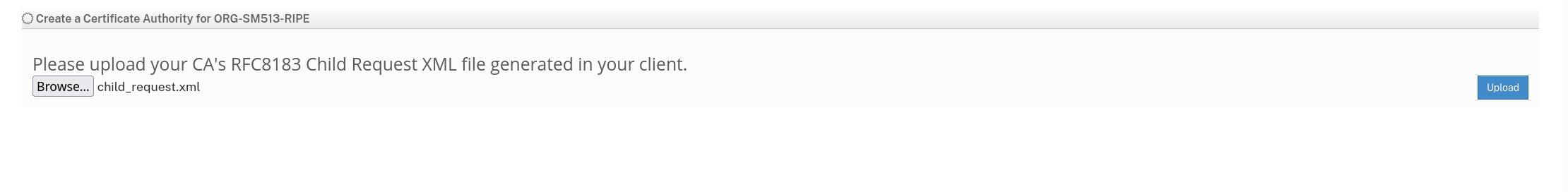 - Now I could make a delegated CA under RIPE and generate a child request XML file from Krill to link myself up.